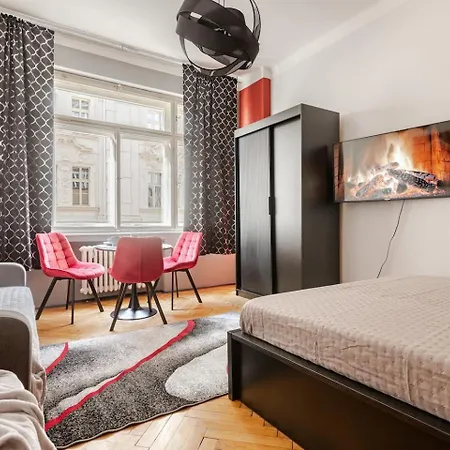 Het appartement van 30 m^2 met uitzicht op de straat ligt in het hartje van Praag. Gasten hebben gemakkelijk toegang tot het Dansende Huis, dat binnen 700 meter loopafstand ligt. Het duurt niet lang om Lennonmuur te bereiken, binnen 17 minuten wandelen ervandaan.
